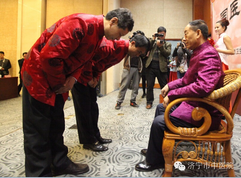 | 为弘扬国粹,传承中医,惠泽民众,今年3月,济宁市中医院特邀6名国医泰斗亲临医院建立“国医大师传承工作室”,该院11名副高以上的中医专家成为他们的学术传承人。国医大师唐祖宣就是其中之一,肿瘤科主任屈岭、脾胃病科主任杨韶华有幸成为他的传承人。在拜师仪式上,笔者见到国医大师唐祖宣教授,一头黑发,面带笑容,神采奕奕,俨然看不出已七十多岁高龄。 由于工作原因,唐老的生活几乎没有什么规律可言,之所以年过七旬还思维敏捷,继续为中医药事业奔波,按他的话来说:“乐观、勤奋、运动、交流是我的活动能力和精神状态一直保持较好的关键。”